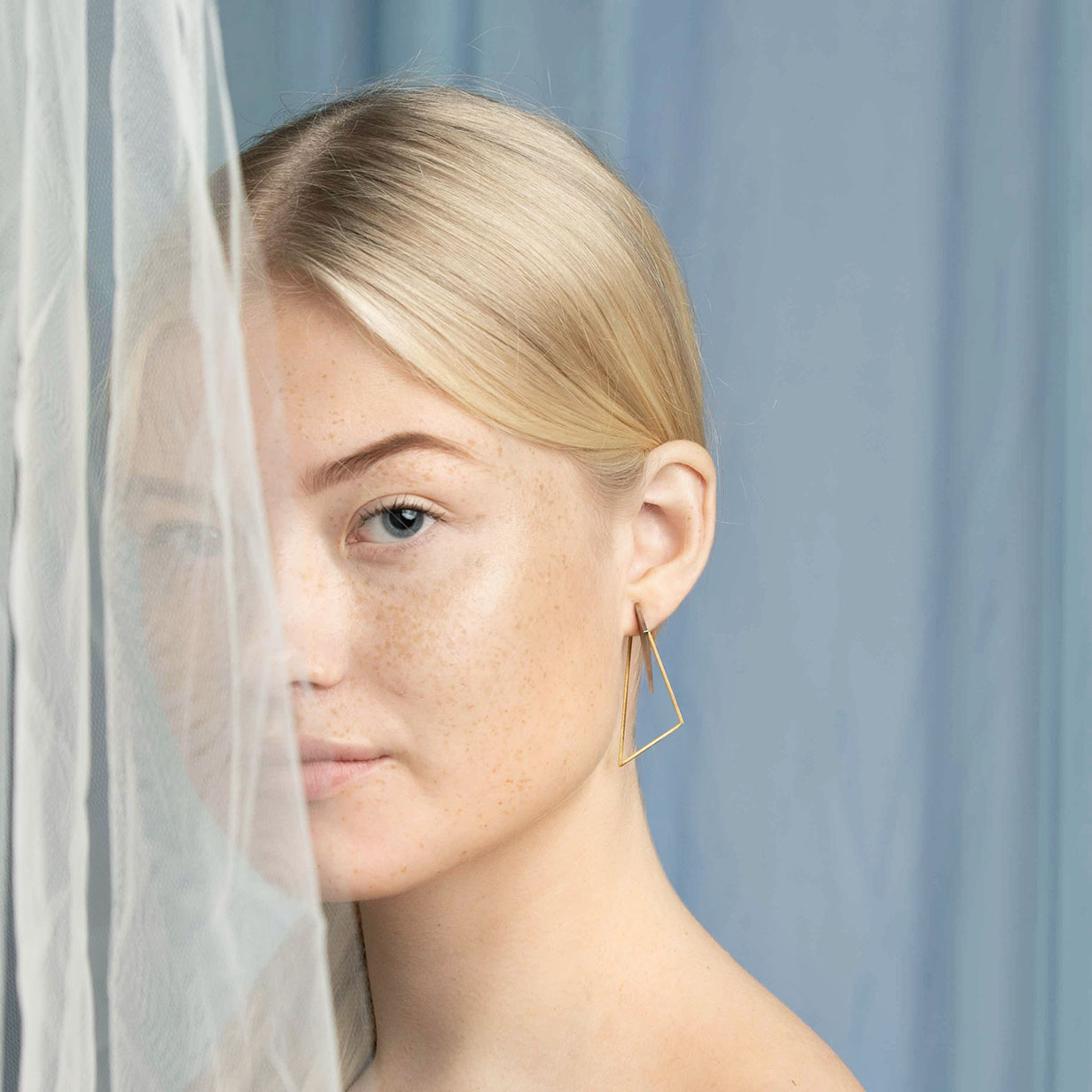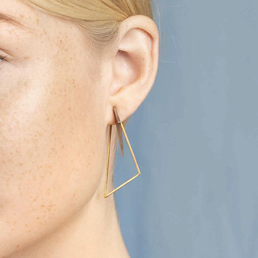 Minimalistiske, geometriske øreringe i kirurgisk stål.