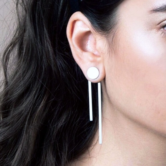 Minimalistiske, geometriske øreringe i kirurgisk stål.
