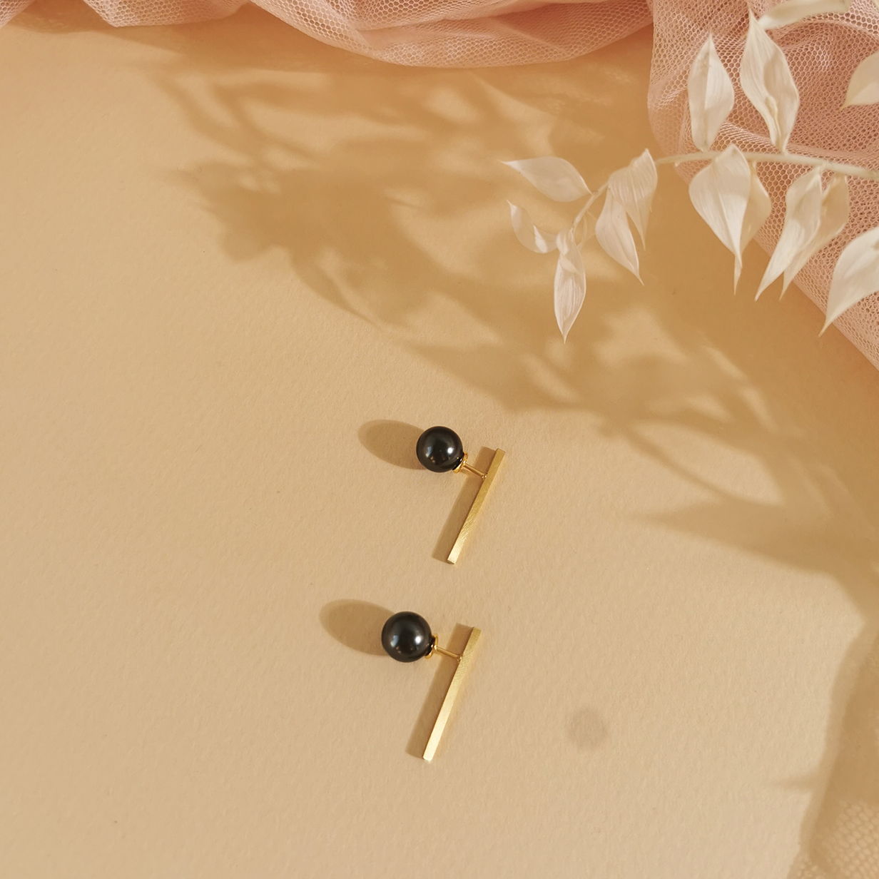 Minimalistiske, geometriske øreringe i et mix mellem vores Ae Collection og Ae Pearl Collection
