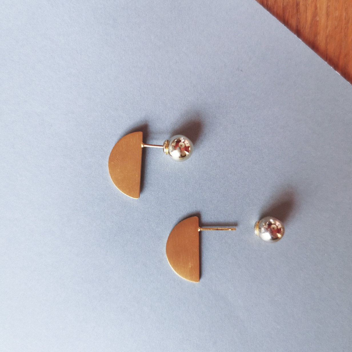 Minimalistiske, geometriske øreringe i et mix mellem vores Ae Collection og Ae Pearl Collection