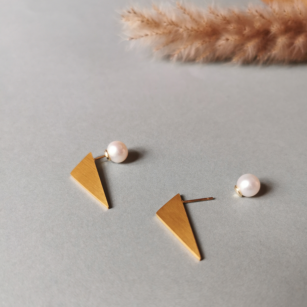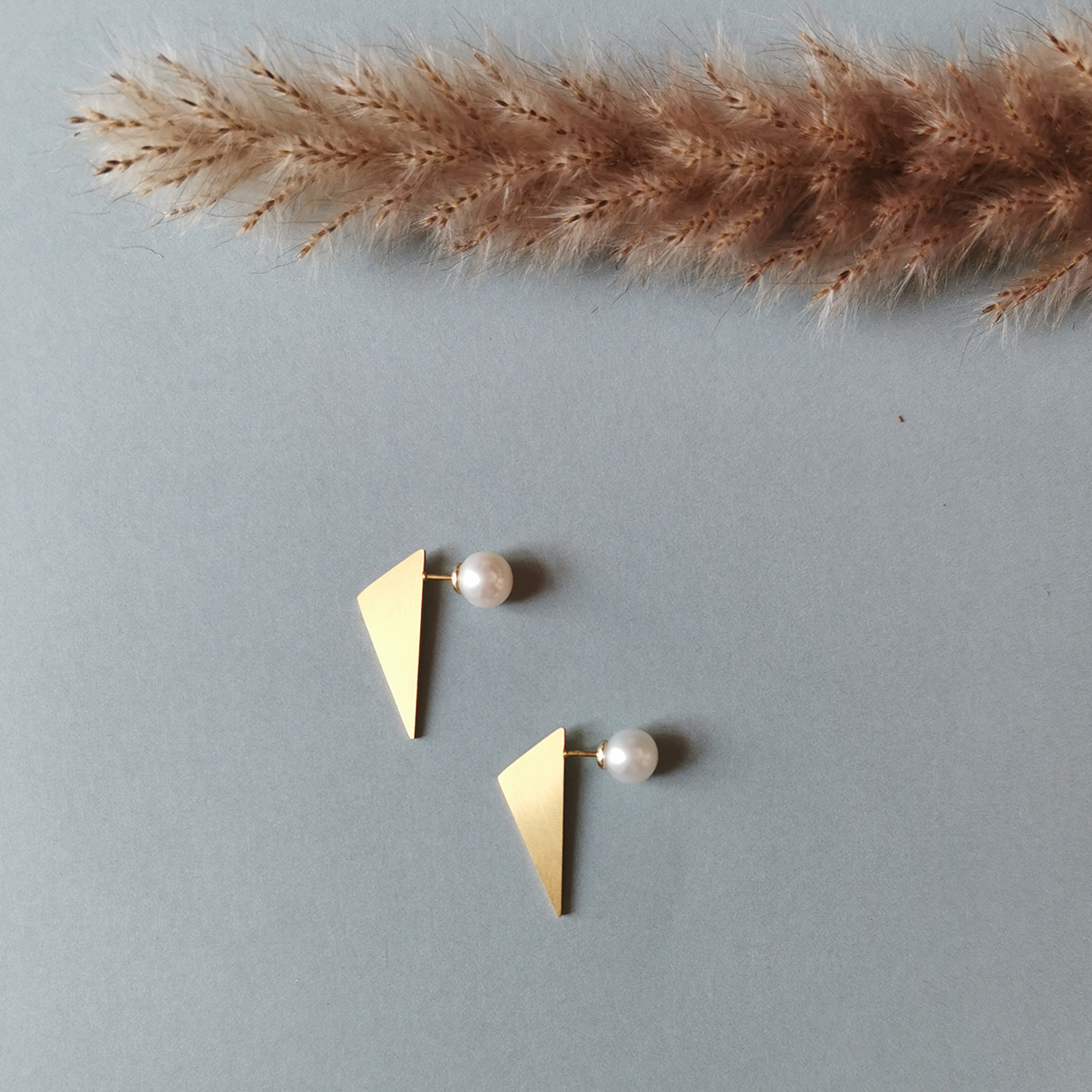 Minimalistiske, geometriske øreringe i et mix mellem vores Ae Collection og Ae Pearl Collection