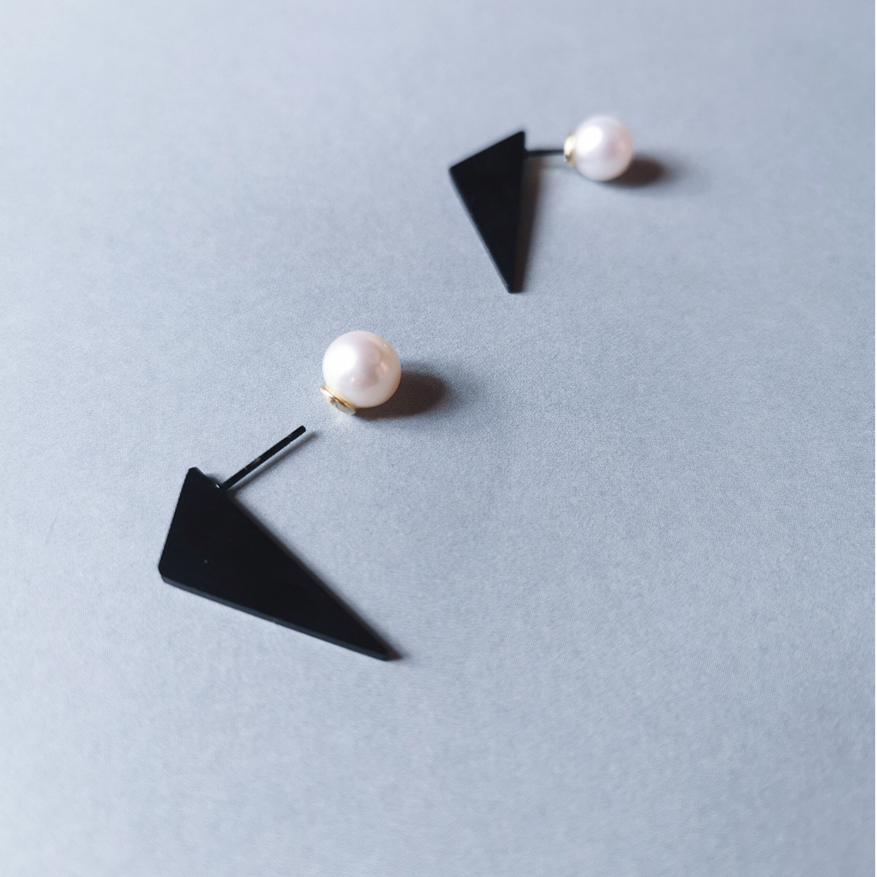 Minimalistiske, geometriske øreringe i et mix mellem vores Ae Collection og Ae Pearl Collection