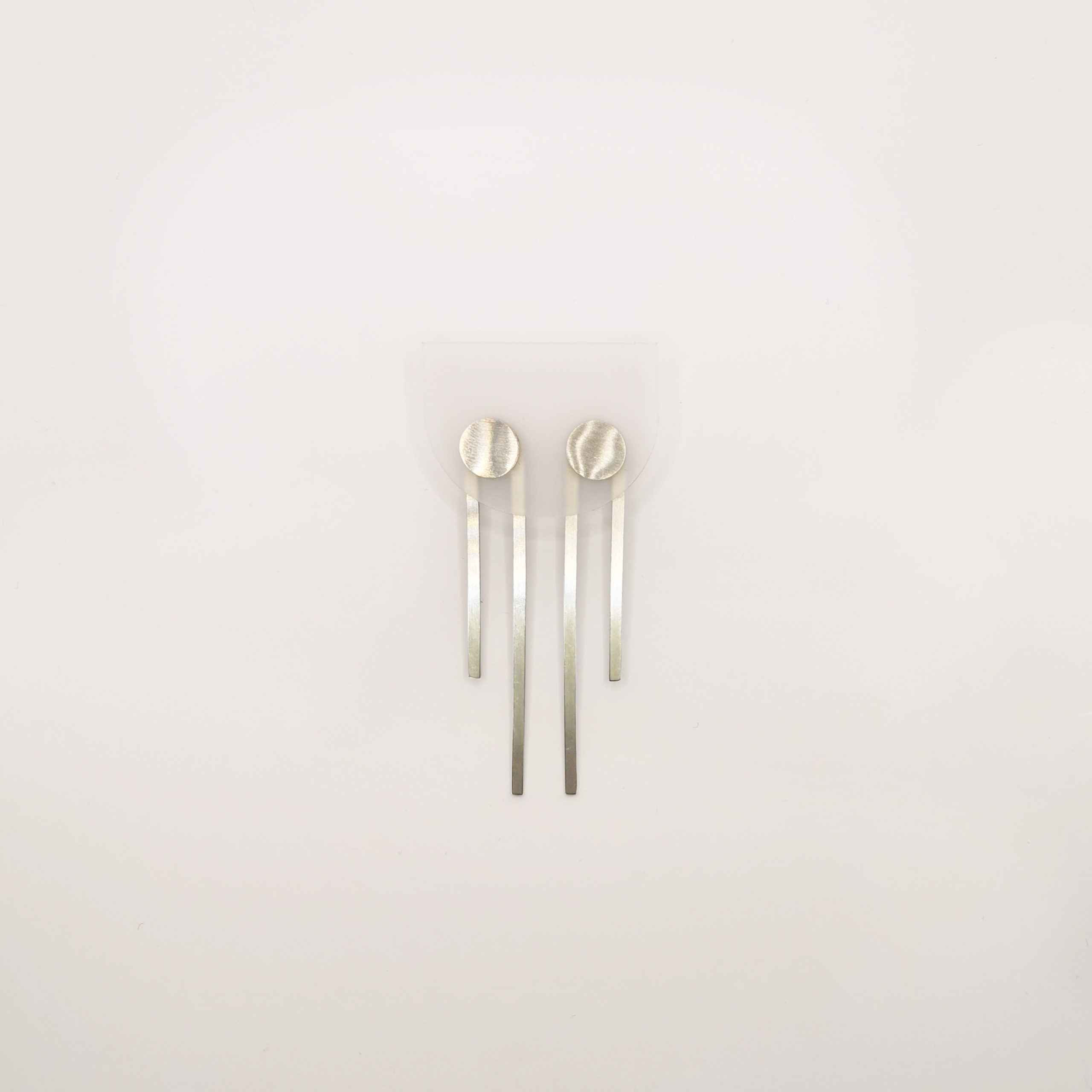 Minimalistiske, geometriske øreringe i kirurgisk stål.