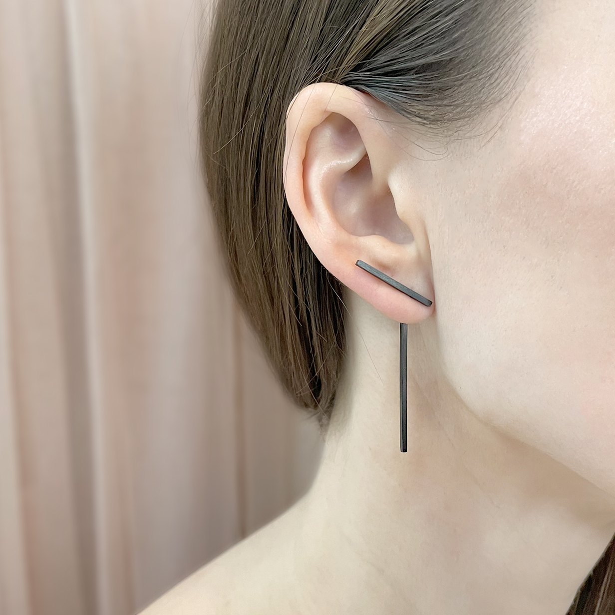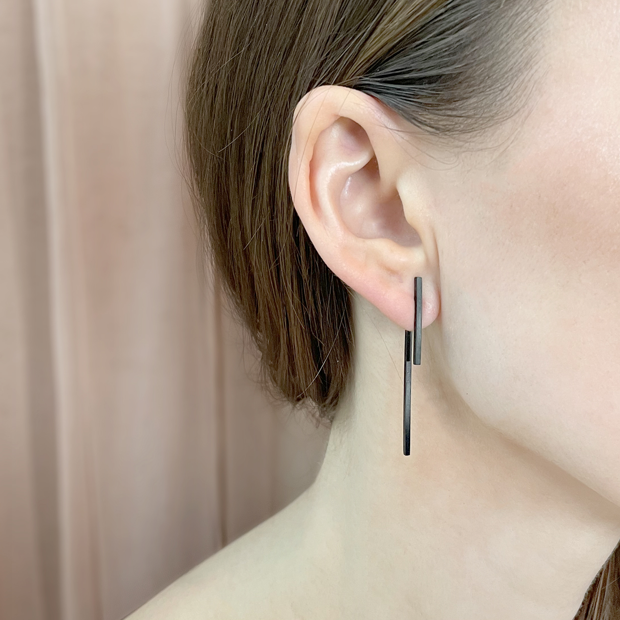 Minimalistiske, geometriske øreringe i kirurgisk stål.