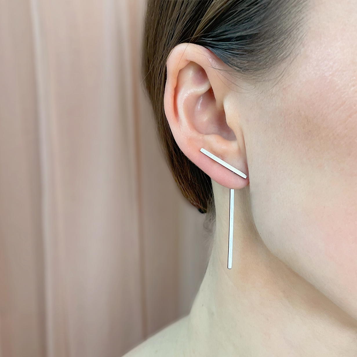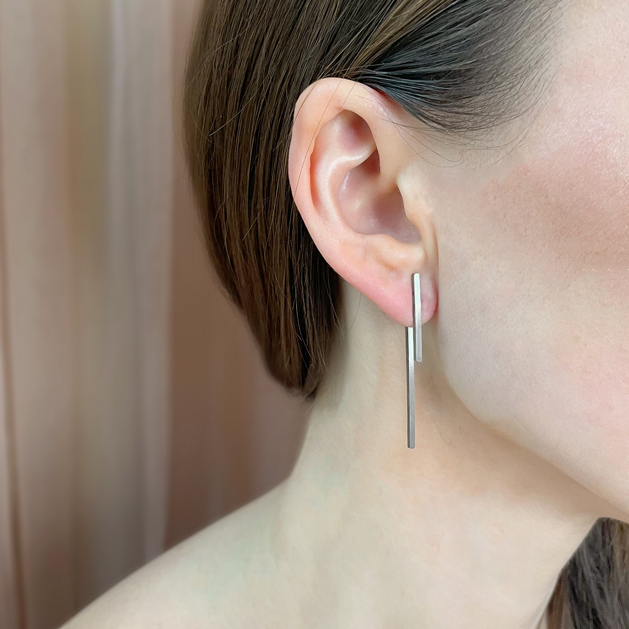 Minimalistiske, geometriske øreringe i kirurgisk stål.