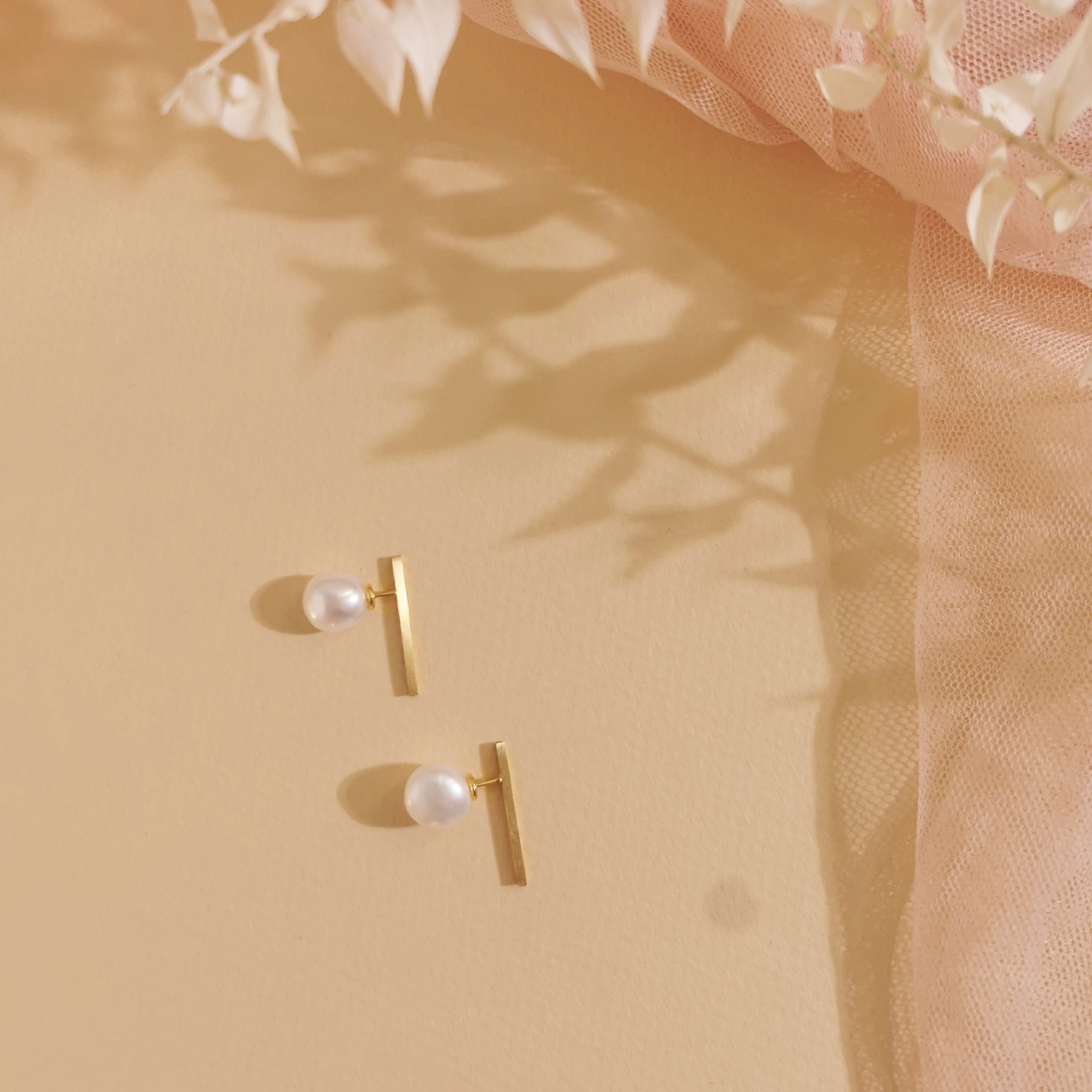 Minimalistiske, geometriske øreringe i et mix mellem vores Ae Collection og Ae Pearl Collection