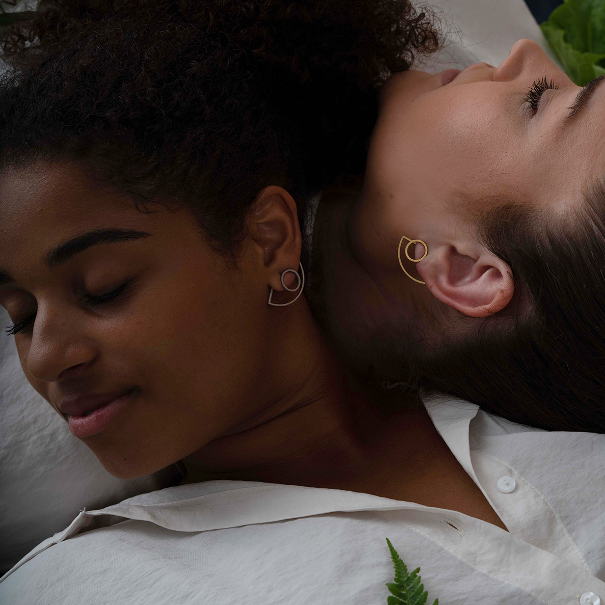 Minimalistiske, geometriske øreringe i kirurgisk stål.