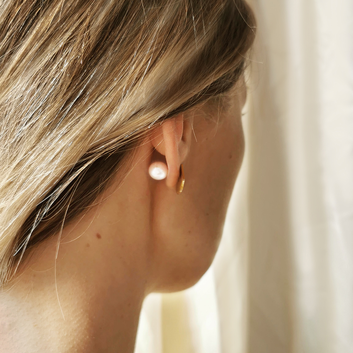 Minimalistiske, geometriske øreringe i et mix mellem vores Ae Collection og Ae Pearl Collection