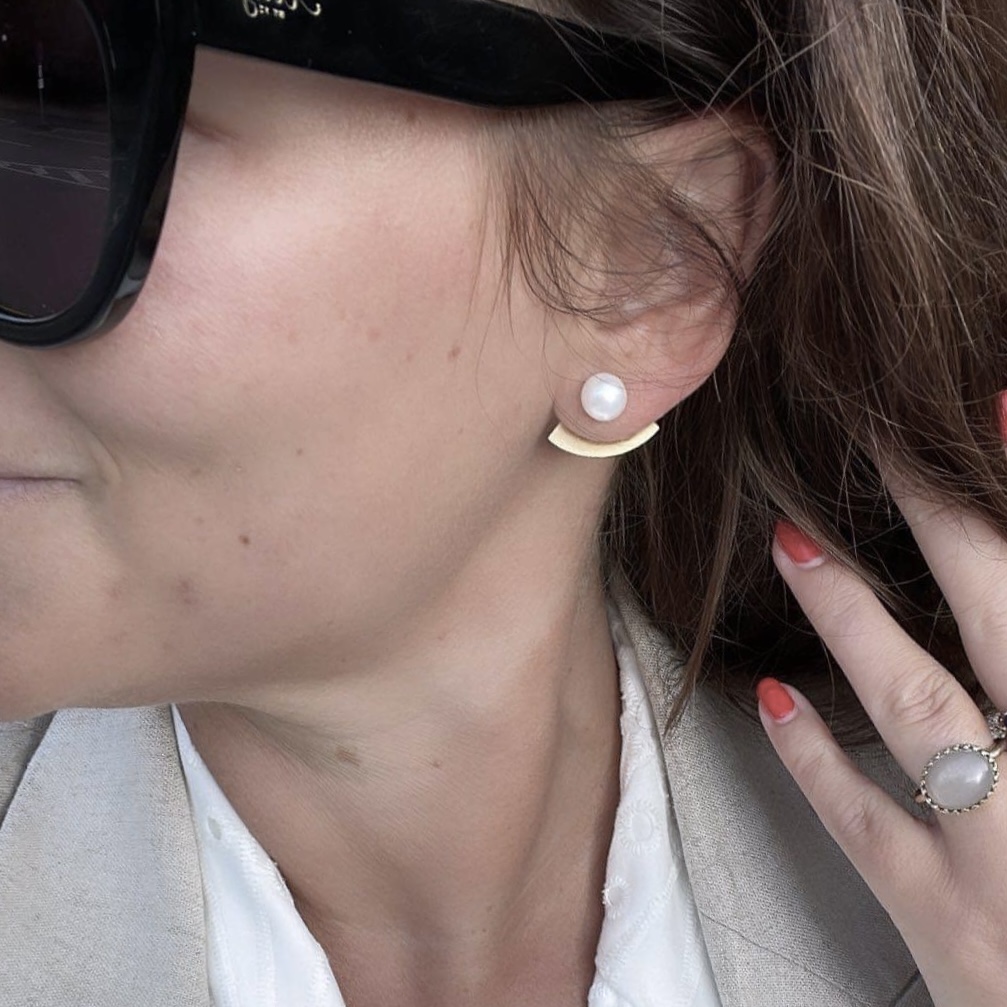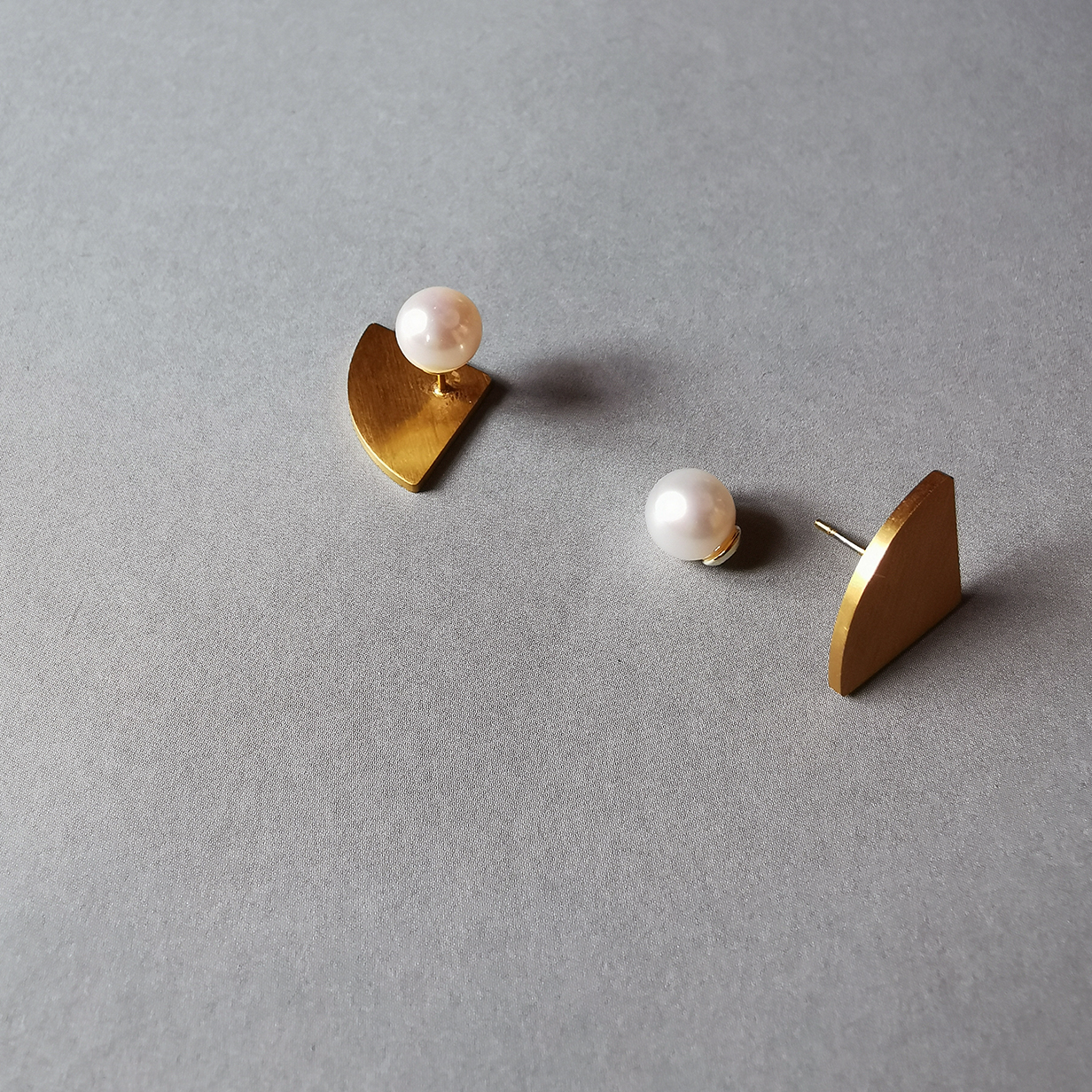 Minimalistiske, geometriske øreringe i et mix mellem vores Ae Collection og Ae Pearl Collection
