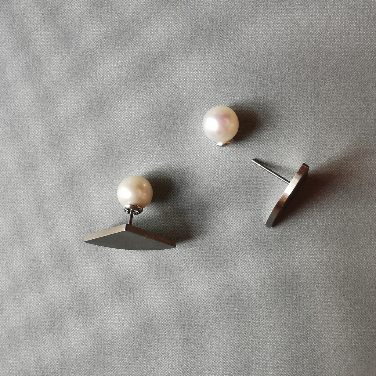 Minimalistiske, geometriske øreringe i et mix mellem vores Ae Collection og Ae Pearl Collection